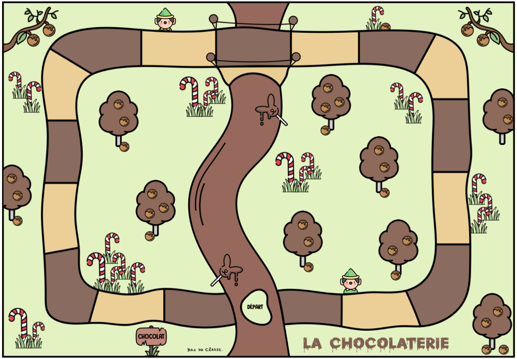 BUT DU JEU : faire le tour de la chocolaterie avant que les lutins ne mangent tous les chocolats.