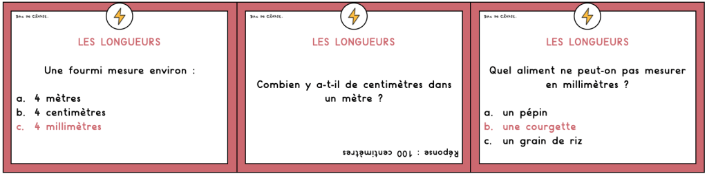 J’ai préparé un nouveau jeu pour que les élèves puissent s’entrainer sur les grandeurs. Il s’agit d’un jeu coopératif qui a plusieurs objectifs : estimer, comparer des grandeurs et connaître les unités de mesure spécifiques aux longueurs, aux masses, aux contenances et aux durées.