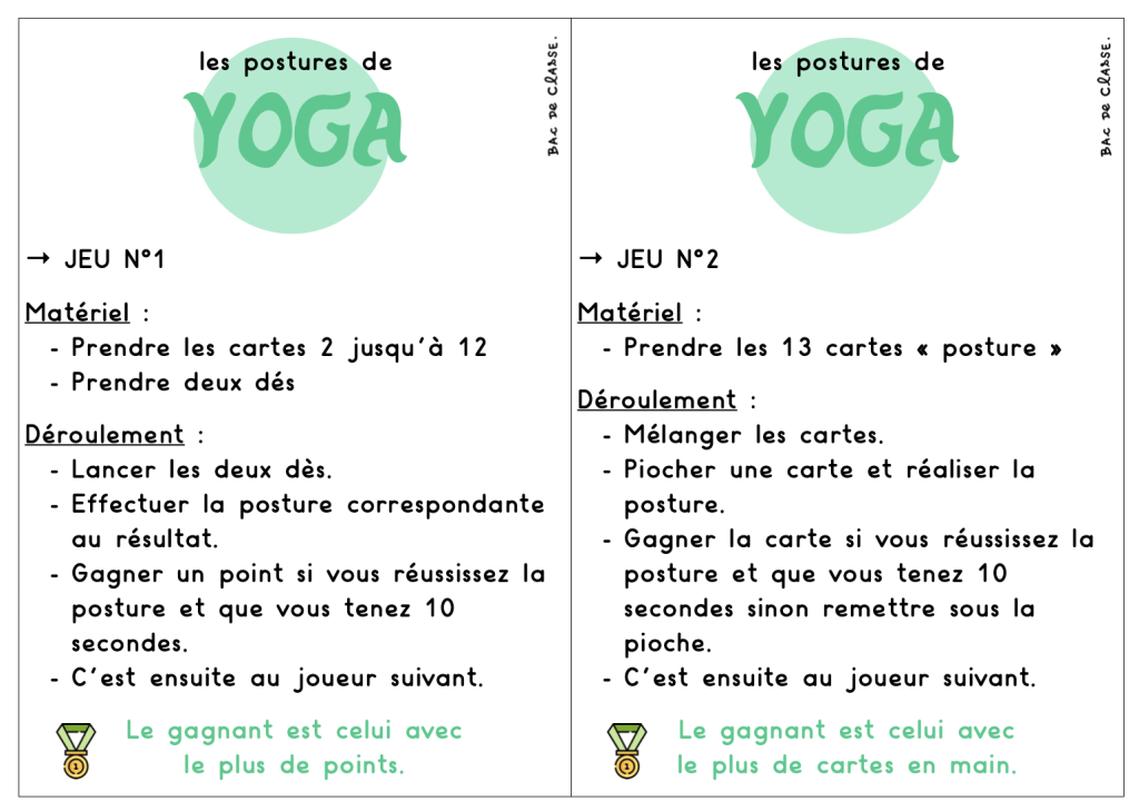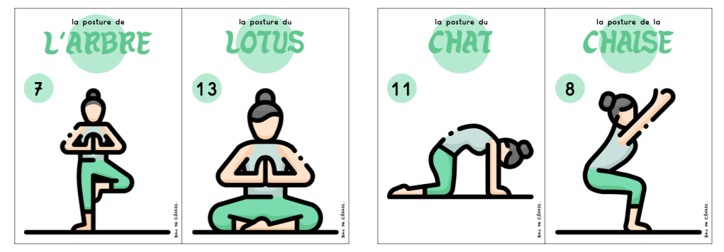 Si le yoga vous intéresse et que vous souhaitez l’exercer avec vos élèves, je vous propose deux petits jeux (LIEN). Ils se jouent avec seulement 13 cartes « posture ». Voici les règles :
