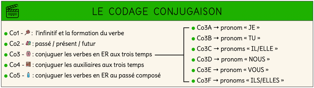 La conjugaison horizontale consiste à travailler un temps et un pronom personnel (PP) sur plusieurs verbes, afin de dégager progressivement des régularités. Cette approche rend les élèves acteurs de leurs apprentissages, en ancrant la conjugaison dans l’observation et la déduction, tout en favorisant la mémoire visuelle et la co-construction du savoir.