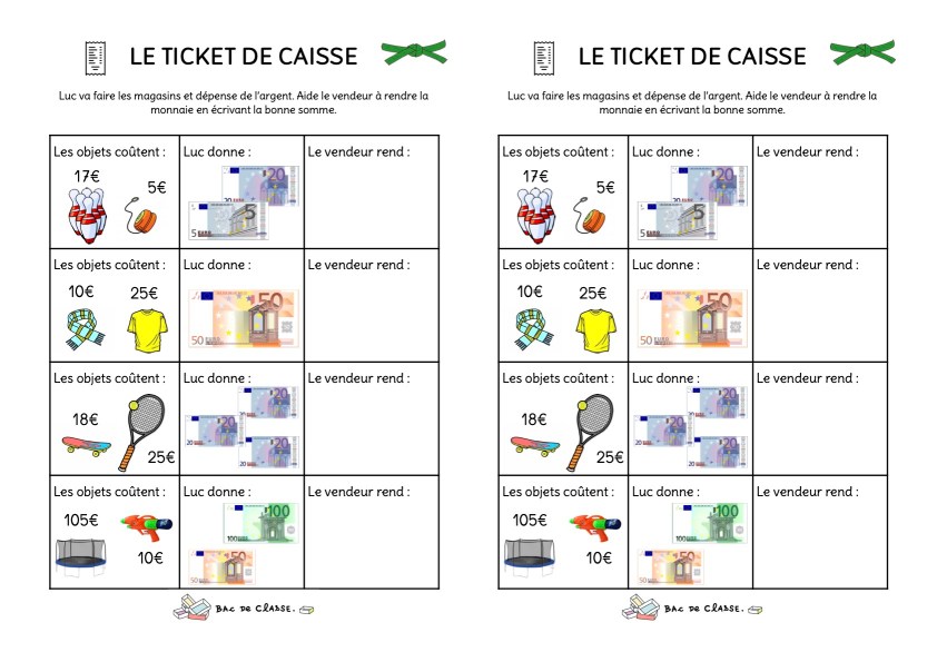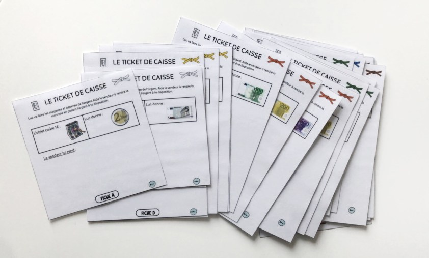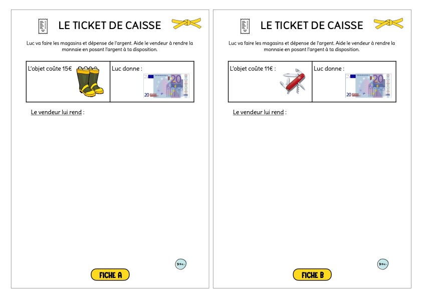 Dans cette version, les élèves manipuleront des petites sommes (inférieures à 30€ et aucun centime).